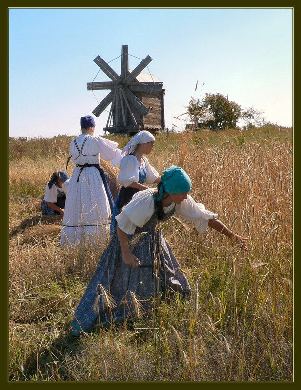 Но с названием ... для меня тут есть анохронизм. Ну, ладно, рожь - плАстовская, но "крестьянки" - уже не венециановские, конечно, но и не позднее селянок Малявина,Кустодиева, Серебряковой, судя по сарафанам.