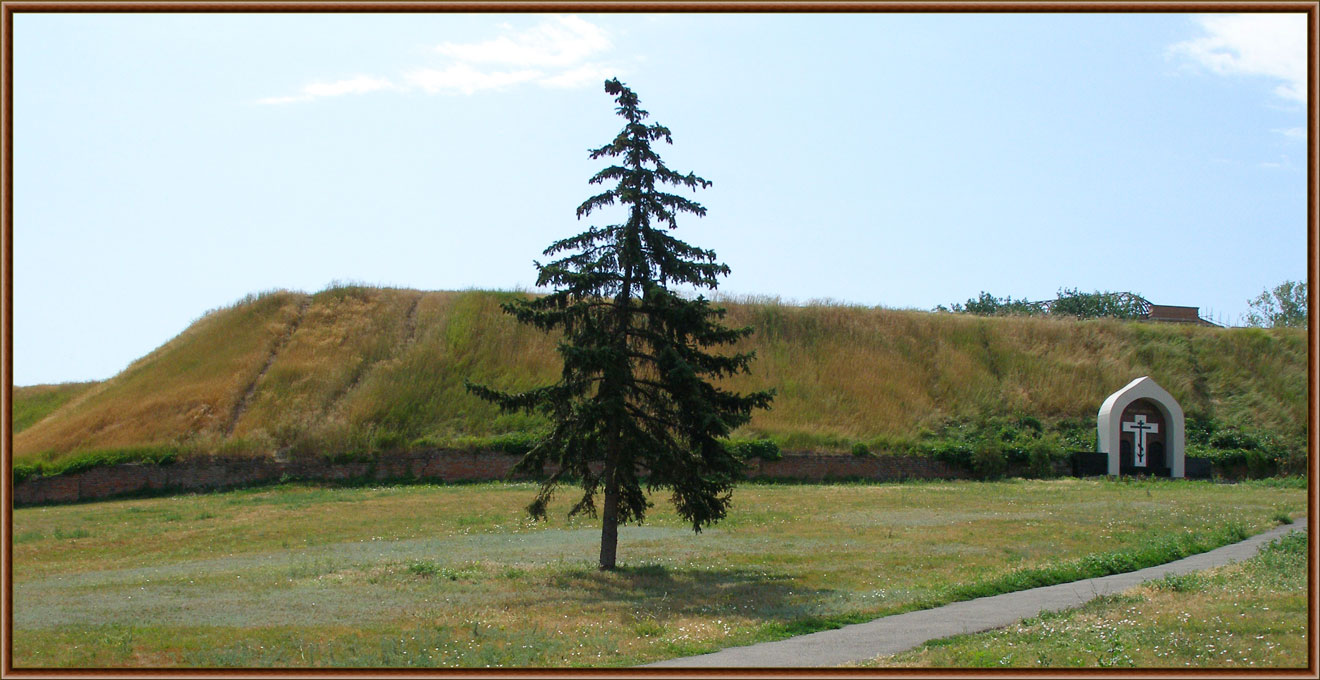 | Крепостные валы турецкой крепости ХVIII века с Алексеевскими воротами - интересные памятники военно-инженерного искусства, свидетели осадного сидения донских казаков (17 в.) и Азовских походов Петра Великого. Легенды гласят, что вал насыпался с помощью самой примитивной техники той эпохи - человеческих рук и шапок. |