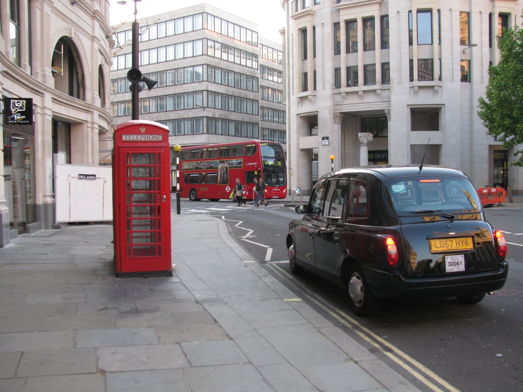Так получилось, что на этом снимке три символа Лондона, которые тиражируются в сувенирах и на открытках: телефонная будка, кэб и добблбеккер (двухэтажный автобус)